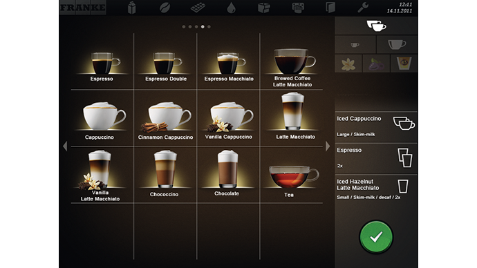 - Izbornik pića na zaslonu može se jednostavno konfigurirati tako da odgovara vašim željama.